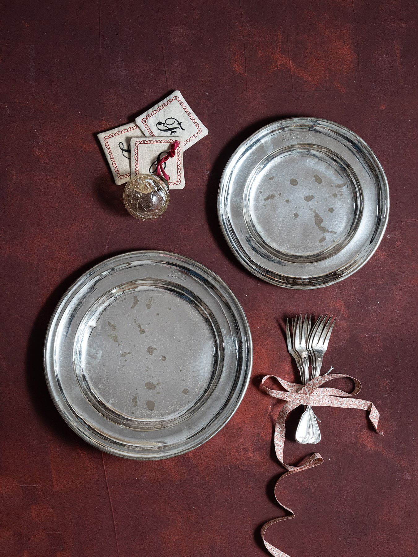 Paris’ten Kuzguncuk’a gelmiş, Grand Hotel St. Etienne logolu ikili tabak takımı. Bir zamanlar otel salonlarında iddialı lezzetler ağırlamış zarif bir takım.