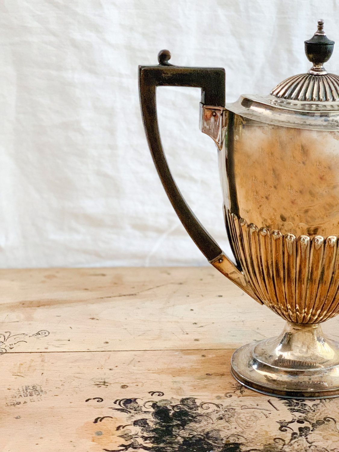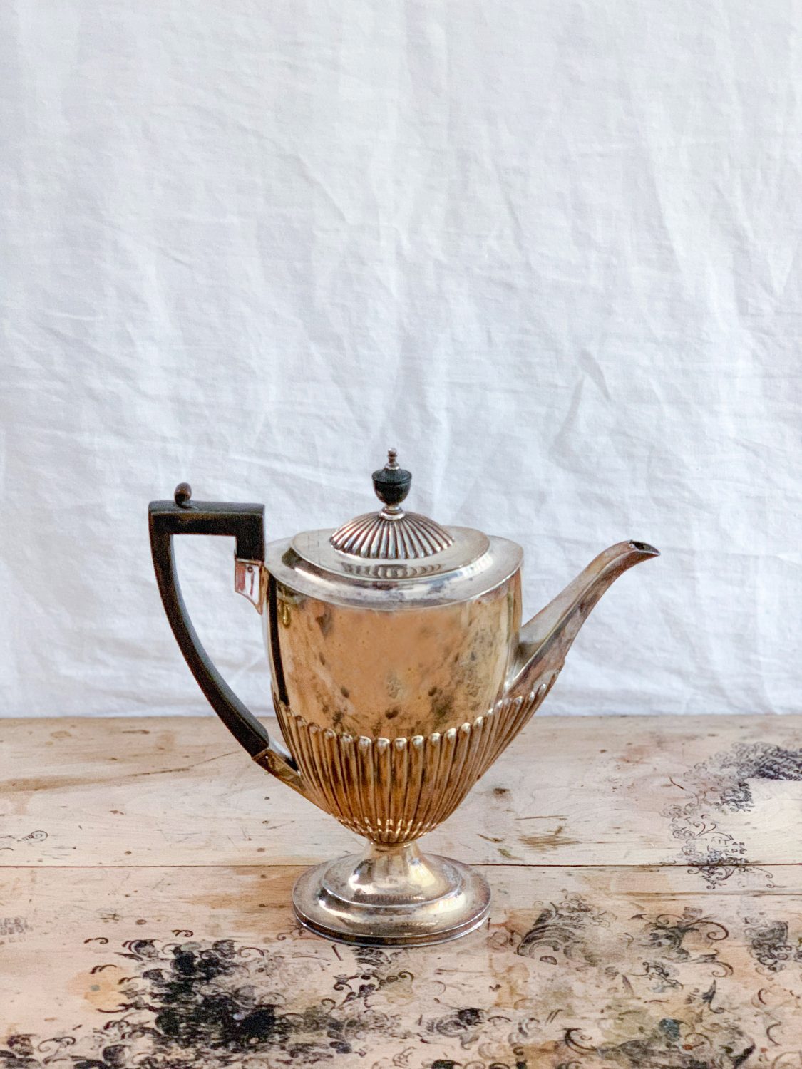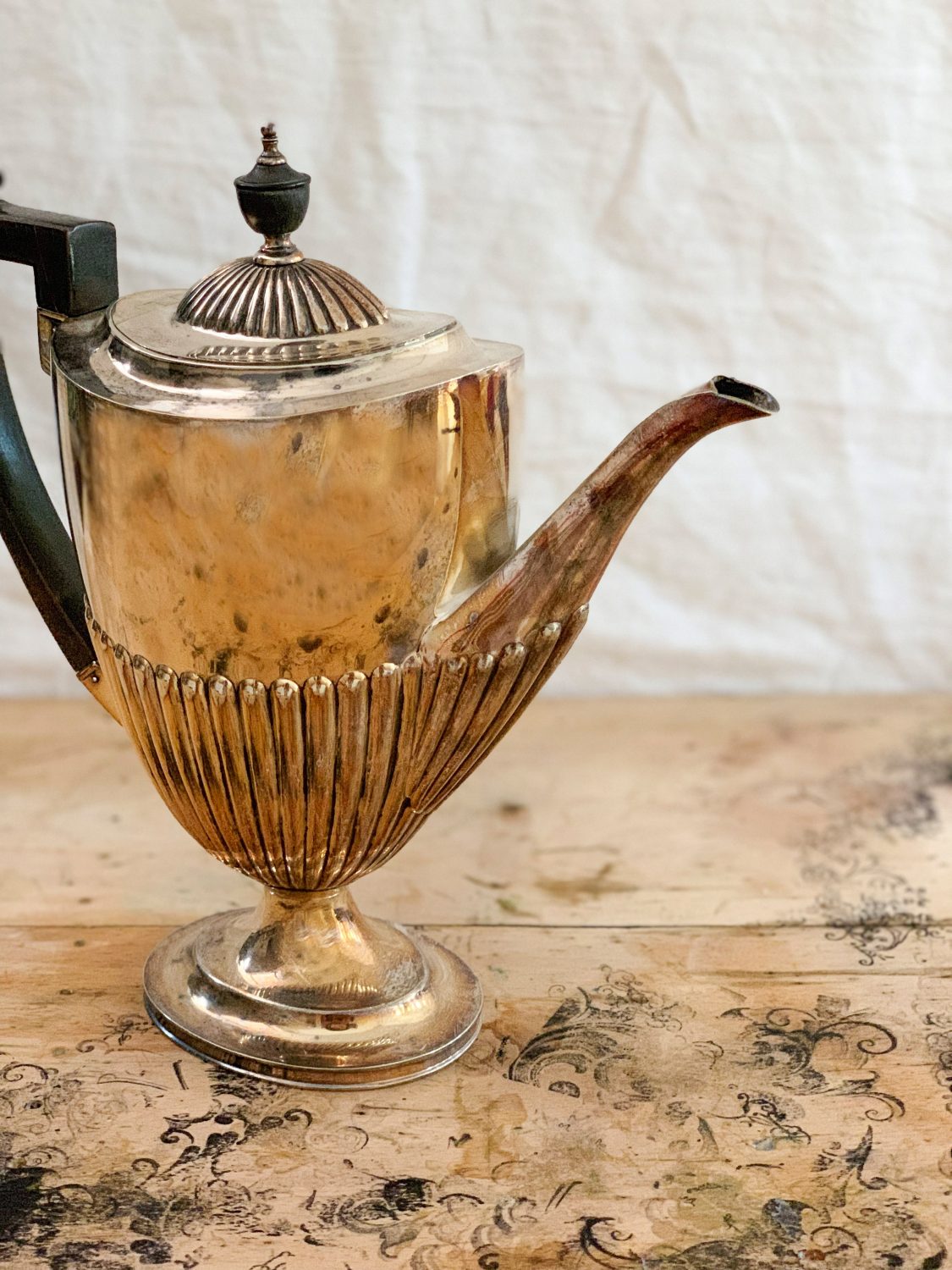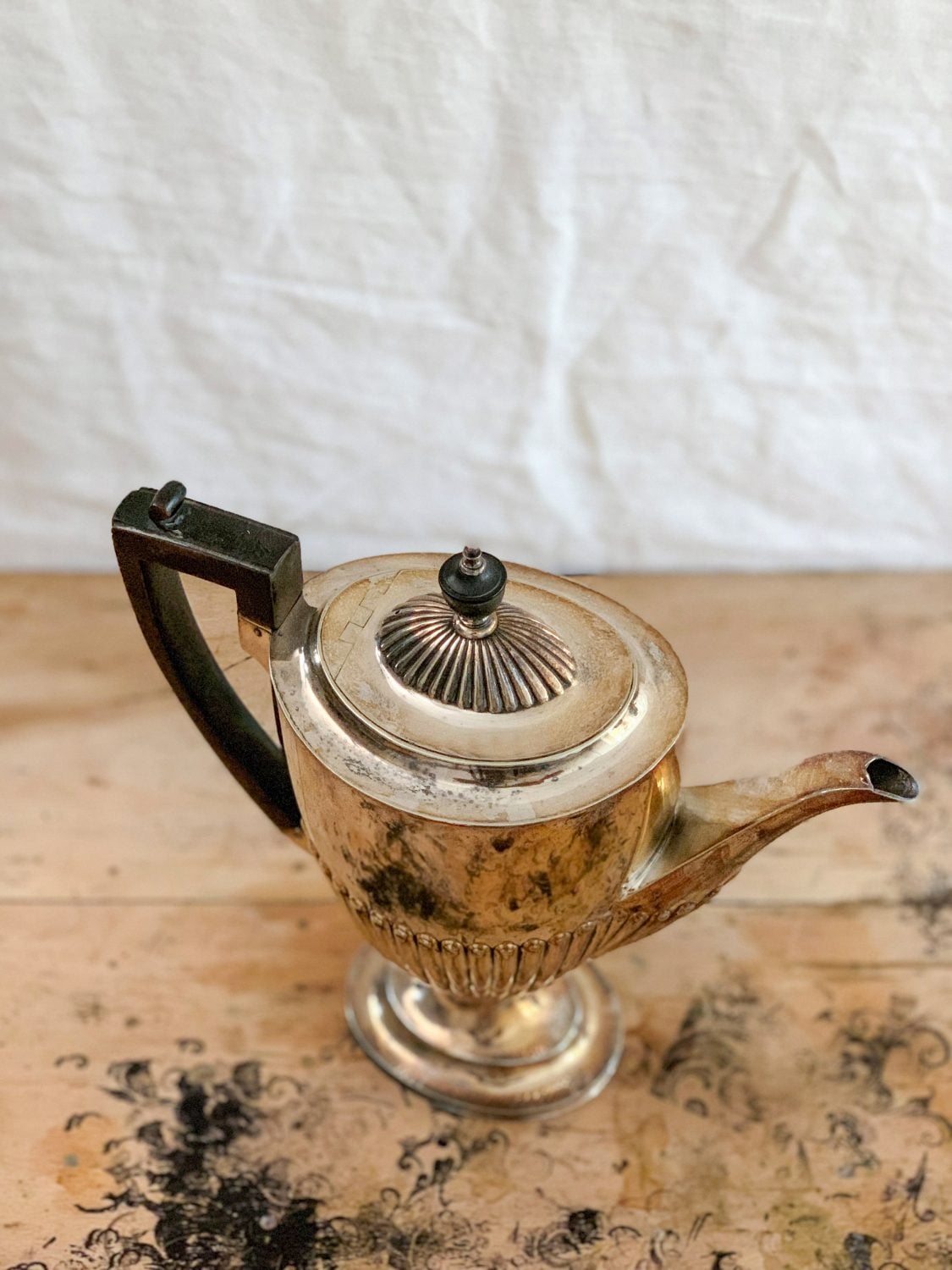Abanoz saplı gümüş kaplama büyük demlik.