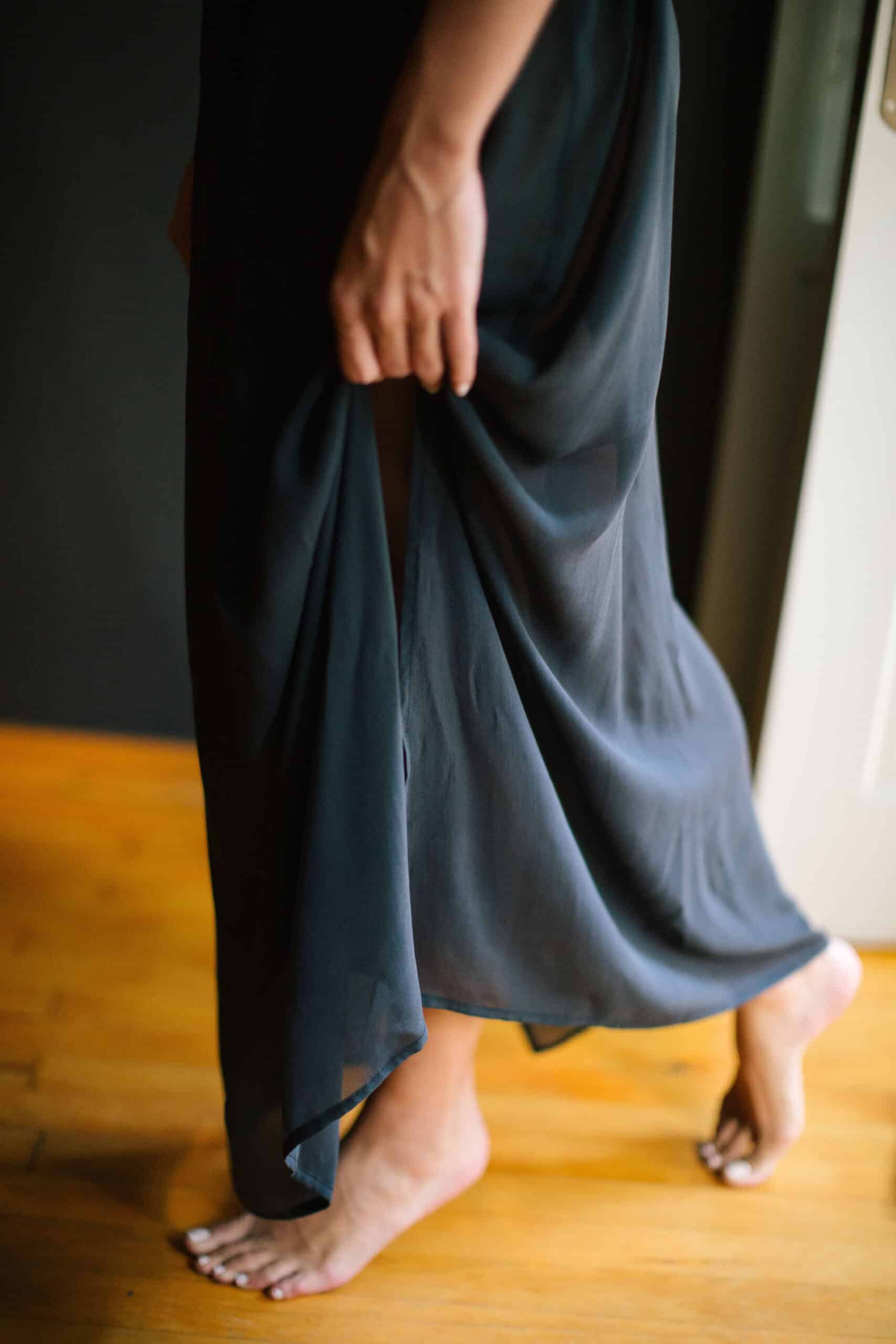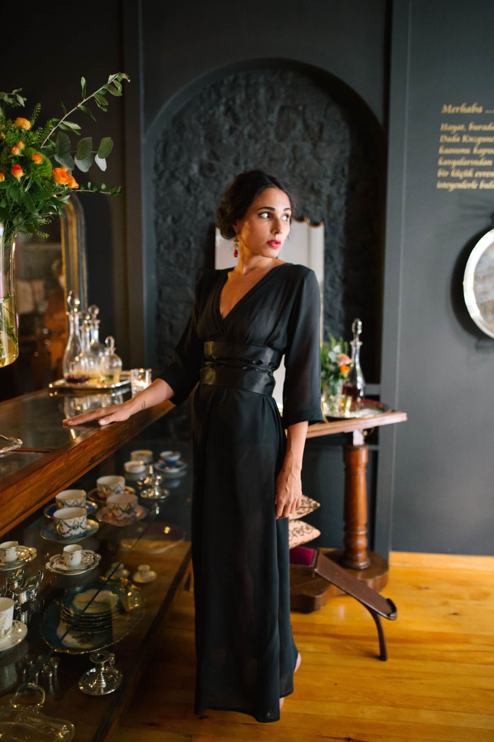 Antakya’da 100 senedir aktif olarak kullanılan dokuma tezgahlarında üretilen ipeklerden dikiyoruz bu elbiseleri. Biz tasarlıyoruz, kumaşlar geçmişin izini de alıp geliyor, ortaya işte bu narin ürünler çıkıyor.
